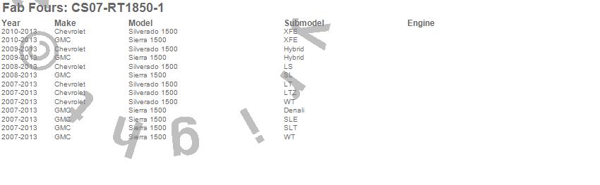 Brand: Fab FoursPart Number: CS07-RT1850-1Bumper- Rear Type: UPC: 005810121099