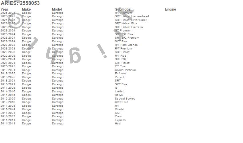 Below is an abbreviated list of applications for the AscentStep Running Boards w/Mounting Brackets.Durango, Dodge, 2026, 2025, 2024, 2023, 2022, 2021, 2020, 2019, 2018, 2017, 2016, 2015, 2014, 2013, 2012, 2011