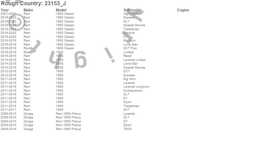 Below is an abbreviated list of applications for the N3 Shocks.1500, 1500 Classic, Ram 1500, Dodge, Ram, 2023, 2022, 2021, 2020, 2019, 2018, 2017, 2016, 2015, 2014, 2013, 2012, 2011, 2010, 2009
