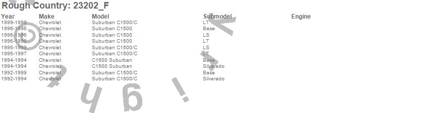 Below is an abbreviated list of applications for the N3 Shocks.C1500 Suburban, Chevrolet, 1999, 1998, 1997, 1996, 1995, 1994, 1993, 1992