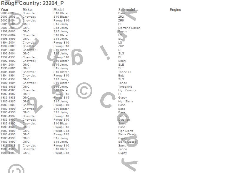 Below is an abbreviated list of applications for the N3 Shocks.S10 Blazer, S10 Pickup, S15 Jimmy, S15 Pickup, Chevrolet, GMC, 2005, 2004, 2003, 2002, 2001, 2000, 1999, 1998, 1997, 1996, 1995, 1994, 1993, 1992