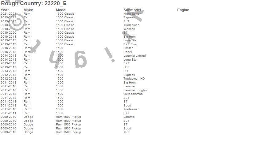 Below is an abbreviated list of applications for the N3 Shocks.1500, 1500 Classic, Ram 1500, Dodge, Ram, 2023, 2022, 2021, 2020, 2019, 2018, 2017, 2016, 2015, 2014, 2013, 2012, 2011, 2010, 2009