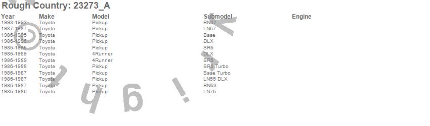Below is an abbreviated list of applications for the N3 Shocks.4Runner, Pickup, Toyota, 1995, 1994, 1993, 1992, 1991, 1990, 1989, 1988, 1987, 1986