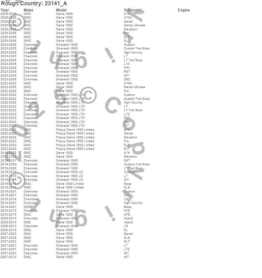 Below is an abbreviated list of applications for the N3 Shocks.Pickup Sierra 1500 Limited, Sierra 1500, Sierra 1500 Limited, Silverado 1500, Silverado 1500 LD, Silverado 1500 LTD, Chevrolet, GMC, 2025, 2024, 2023, 2022, 2021, 2020, 2019, 2018, 2017, 2016, 2015, 2014