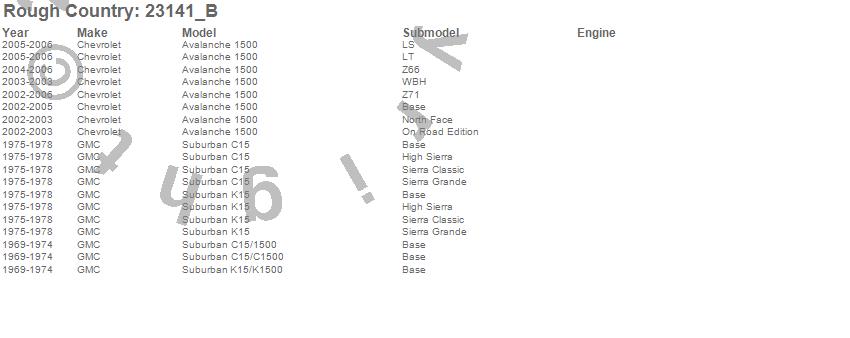 Below is an abbreviated list of applications for the N3 Shocks.Avalanche 1500, C15 Suburban, C15/C1500 Suburban, K15 Suburban, K15/K1500 Suburban, Chevrolet, GMC, 2006, 2005, 2004, 2003, 2002, 1978, 1977, 1976, 1975, 1974, 1973, 1972, 1971
