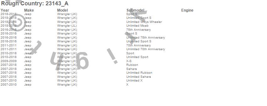 Below is an abbreviated list of applications for the N3 Shocks.Wrangler (JK), Wrangler (JL), Jeep, 2018, 2017, 2016, 2015, 2014, 2013, 2012, 2011, 2010, 2009, 2008, 2007