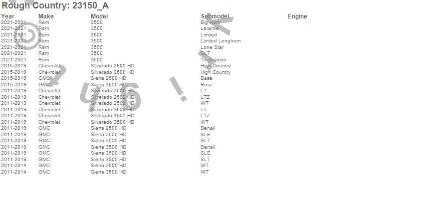 Below is an abbreviated list of applications for the N3 Shocks.3500, Sierra 2500 HD, Sierra 3500 HD, Silverado 2500 HD, Silverado 3500 HD, Chevrolet, GMC, Ram, 2021, 2019, 2018, 2017, 2016, 2015, 2014, 2013, 2012, 2011
