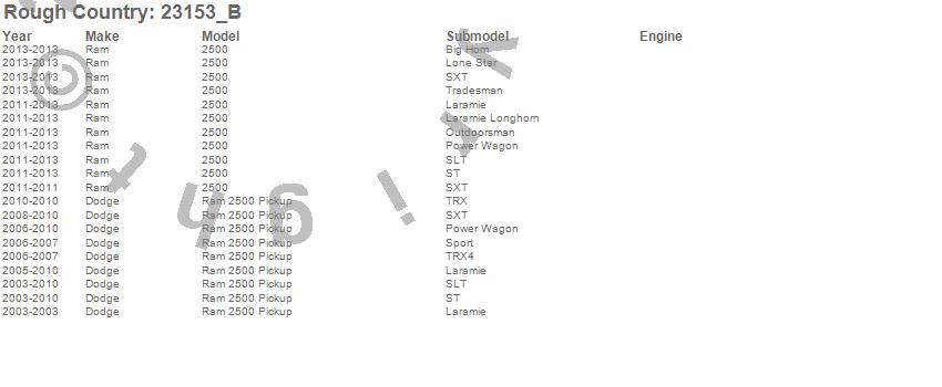 Below is an abbreviated list of applications for the N3 Shocks.2500, Ram 2500, Dodge, Ram, 2013, 2012, 2011, 2010, 2009, 2008, 2007, 2006, 2005, 2004, 2003