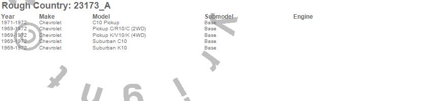 Below is an abbreviated list of applications for the N3 Shocks.C10 Pickup, C10 Suburban, K10 Pickup, K10 Suburban, Chevrolet, 1972, 1971, 1970, 1969