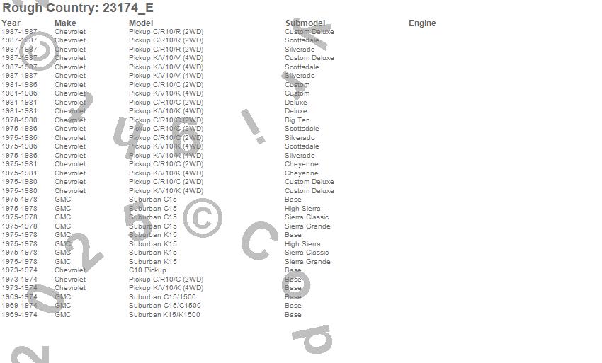 Below is an abbreviated list of applications for the N3 Shocks.C10 Pickup, C15 Suburban, C15/C1500 Suburban, K10 Pickup, K15 Suburban, K15/K1500 Suburban, R10 Pickup, V10 Pickup, Chevrolet, GMC, 1987, 1986, 1985, 1984, 1983, 1982, 1981, 1980, 1979, 1978