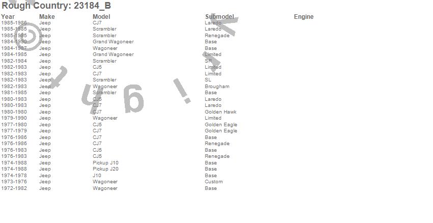 Below is an abbreviated list of applications for the N3 Shocks.CJ5, CJ7, Grand Wagoneer, J10, J20, Scrambler, Wagoneer, Jeep, 1990, 1989, 1988, 1987, 1986, 1985, 1984, 1983, 1982, 1981, 1980, 1979