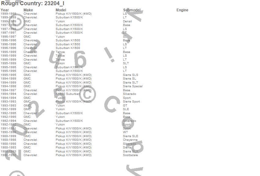 Below is an abbreviated list of applications for the N3 Shocks.K1500, K1500 Pickup, K1500 Suburban, Tahoe, Yukon, Chevrolet, GMC, 1999, 1998, 1997, 1996, 1995, 1994, 1993, 1992, 1991, 1990, 1989, 1988