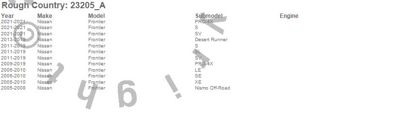Below is an abbreviated list of applications for the N3 Shocks.Frontier, Nissan, 2021, 2019, 2018, 2017, 2016, 2015, 2014, 2013, 2012, 2011, 2010, 2009, 2008, 2007, 2006, 2005
