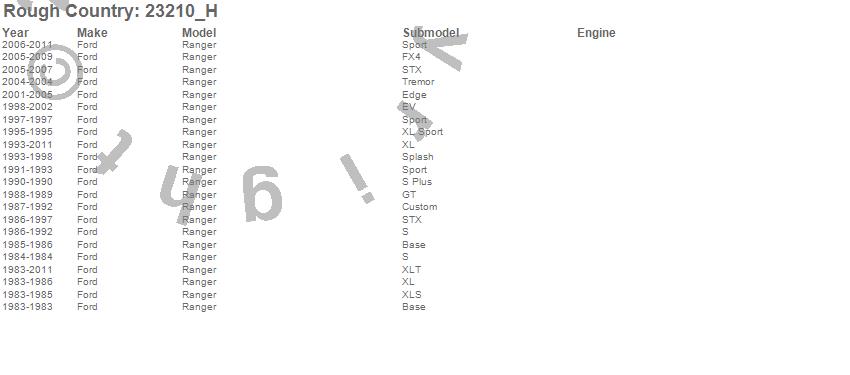 Below is an abbreviated list of applications for the N3 Shocks.Ranger, Ford, 2011, 2010, 2009, 2008, 2007, 2006, 2005, 2004, 2003, 2002, 2001, 2000, 1999, 1998, 1997, 1996, 1995, 1994