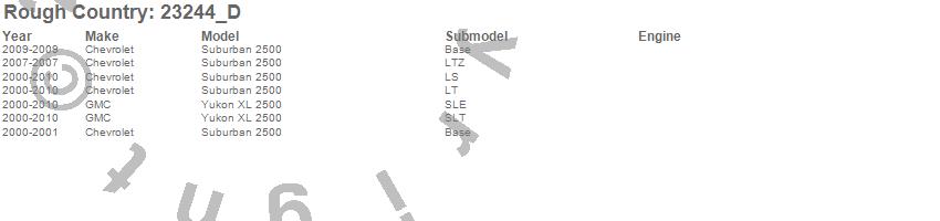 Below is an abbreviated list of applications for the N3 Shocks.Suburban 2500, Yukon XL 2500, Chevrolet, GMC, 2010, 2009, 2008, 2007, 2006, 2005, 2004, 2003, 2002, 2001, 2000