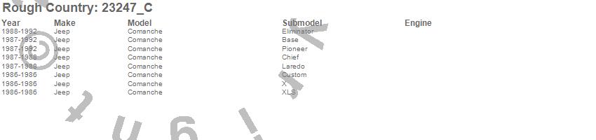 Below is an abbreviated list of applications for the N3 Shocks.Comanche, Jeep, 1992, 1991, 1990, 1989, 1988, 1987, 1986