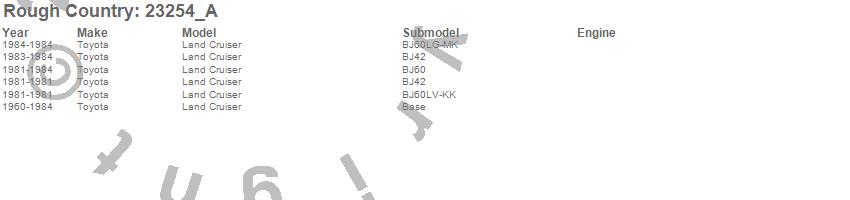 Below is an abbreviated list of applications for the N3 Shocks.Land Cruiser, Toyota, 1984, 1983, 1982, 1981, 1980, 1979, 1978, 1977, 1976, 1975, 1974, 1973, 1972, 1971, 1970, 1969, 1968, 1967