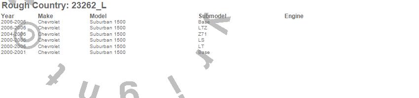 Below is an abbreviated list of applications for the N3 Shocks.Suburban 1500, Chevrolet, 2006, 2005, 2004, 2003, 2002, 2001, 2000