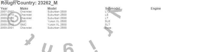Below is an abbreviated list of applications for the N3 Shocks.Suburban 2500, Yukon XL 2500, Chevrolet, GMC, 2010, 2009, 2008, 2007, 2006, 2005, 2004, 2003, 2002, 2001, 2000