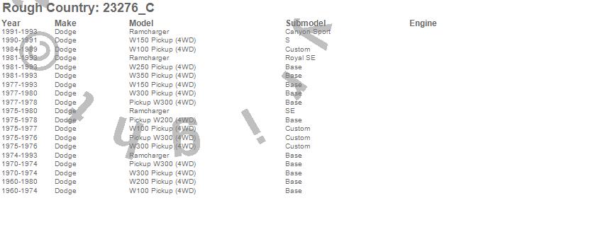 Below is an abbreviated list of applications for the N3 Shocks.Ramcharger, W100 Pickup, W150 Pickup, W200 Pickup, W250 Pickup, W300 Pickup, W350 Pickup, Dodge, 1993, 1992, 1991, 1990, 1989, 1988, 1987, 1986, 1985, 1984, 1983, 1982