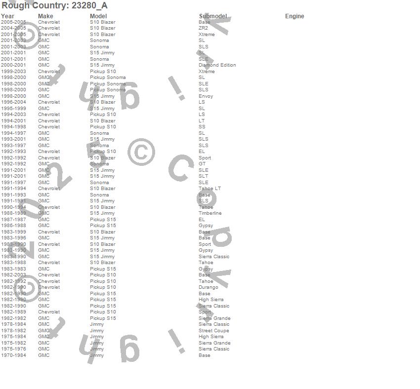 Below is an abbreviated list of applications for the N3 Shocks.Jimmy, S10 Blazer, S10 Pickup, S15 Jimmy, S15 Pickup, Sonoma, Chevrolet, GMC, 2005, 2004, 2003, 2002, 2001, 2000, 1999, 1998, 1997, 1996, 1995, 1994