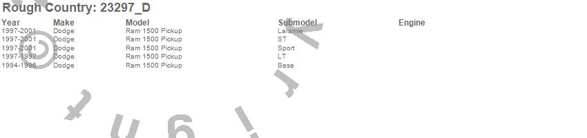 Below is an abbreviated list of applications for the N3 Shocks.Ram 1500, Dodge, 2001, 2000, 1999, 1998, 1997, 1996, 1995, 1994