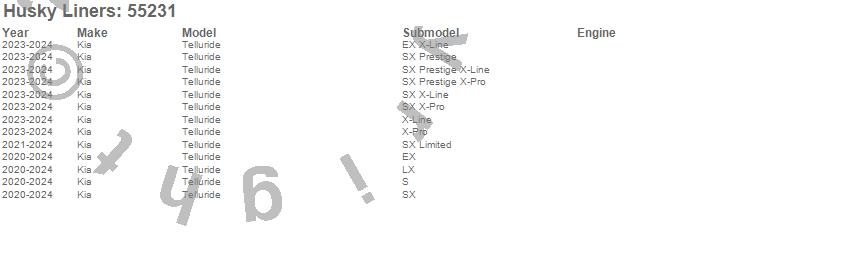 Below is an abbreviated list of applications for the X-act Contour Floor Liner.Telluride, Kia, 2025, 2024, 2023, 2022, 2021, 2020