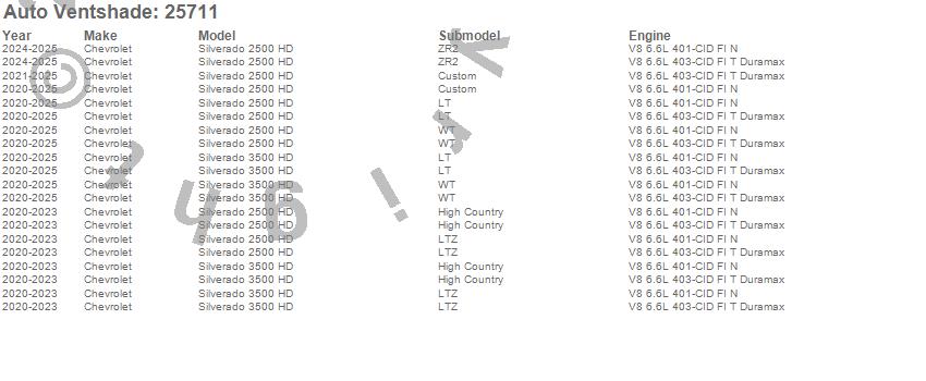Below is an abbreviated list of applications for the Bugflector II Stone/Bug Deflector.Silverado 2500 HD, Silverado 3500 HD, Chevrolet, 2025, 2024, 2023, 2022, 2021, 2020