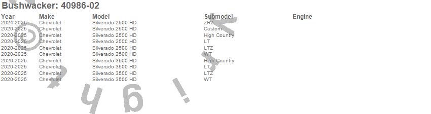 Below is an abbreviated list of applications for the Extend-A-Fender Flares.Silverado 2500 HD, Silverado 3500 HD, Chevrolet, 2026, 2025, 2024, 2023, 2022, 2021, 2020