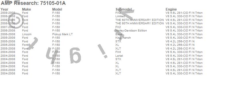 Below is an abbreviated list of applications for the PowerStep.F-150, Mark LT, Ford, Lincoln, 2008, 2007, 2006, 2005, 2004