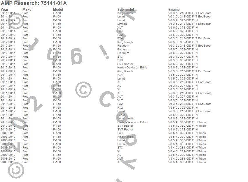 Below is an abbreviated list of applications for the PowerStep.F-150, Ford, 2014, 2013, 2012, 2011, 2010, 2009