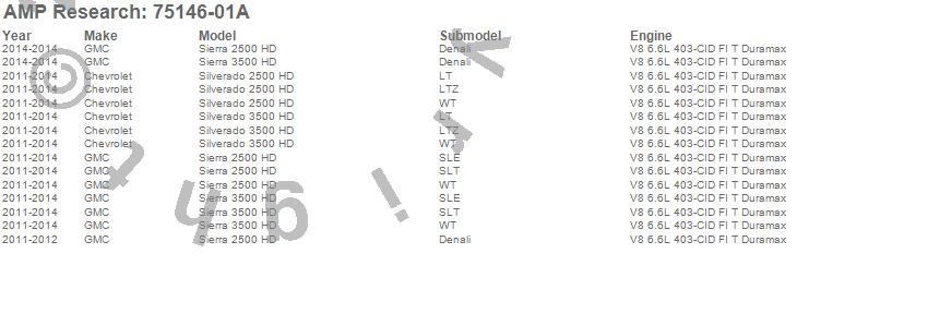 Below is an abbreviated list of applications for the PowerStep.Sierra 2500 HD, Sierra 3500 HD, Silverado 2500 HD, Silverado 3500 HD, Chevrolet, GMC, 2014, 2013, 2012, 2011