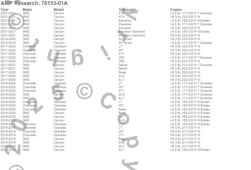 Below is an abbreviated list of applications for the PowerStep Plug-N-Play System.Canyon, Colorado, Chevrolet, GMC, 2022, 2021, 2020, 2019, 2018, 2017, 2016, 2015