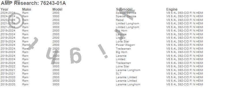 Below is an abbreviated list of applications for the PowerStep Plug-N-Play System.2500, 3500, Ram, 2024, 2023, 2022, 2021, 2020, 2019