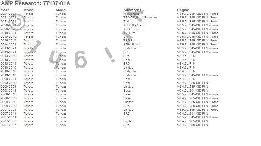 Below is an abbreviated list of applications for the PowerStep XL.Tundra, Toyota, 2021, 2020, 2019, 2018, 2017, 2016, 2015, 2014, 2013, 2012, 2011, 2010, 2009, 2008, 2007