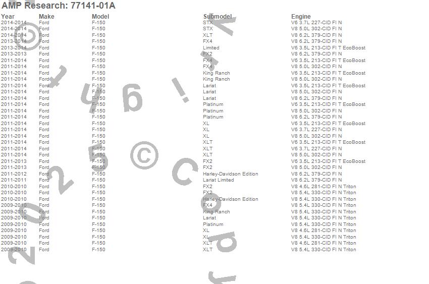 Below is an abbreviated list of applications for the PowerStep XL.F-150, Ford, 2014, 2013, 2012, 2011, 2010, 2009