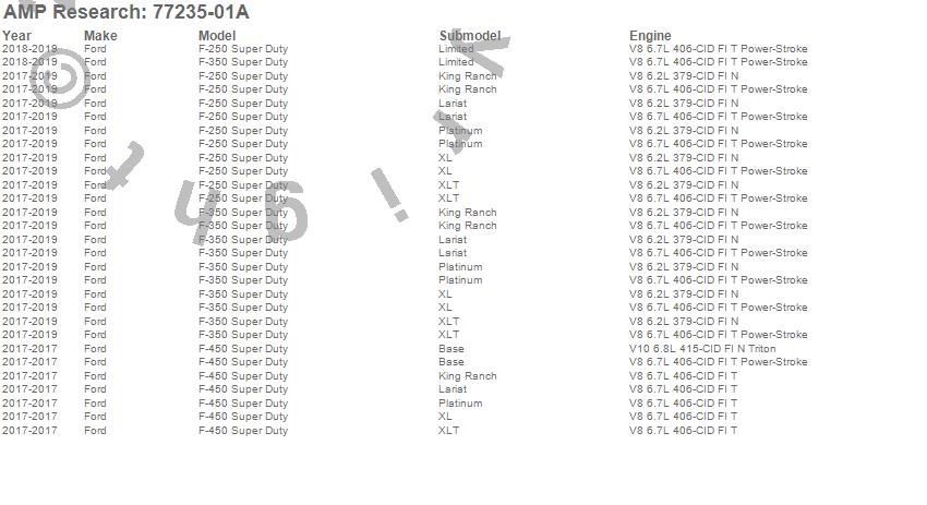 Below is an abbreviated list of applications for the PowerStep XL.F-250 Super Duty, F-350 Super Duty, F-450 Super Duty, Ford, 2019, 2018, 2017