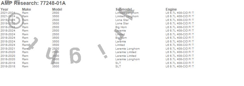 Below is an abbreviated list of applications for the PowerStep XL.2500, 3500, Ram, 2024, 2023, 2022, 2021, 2020, 2019, 2018