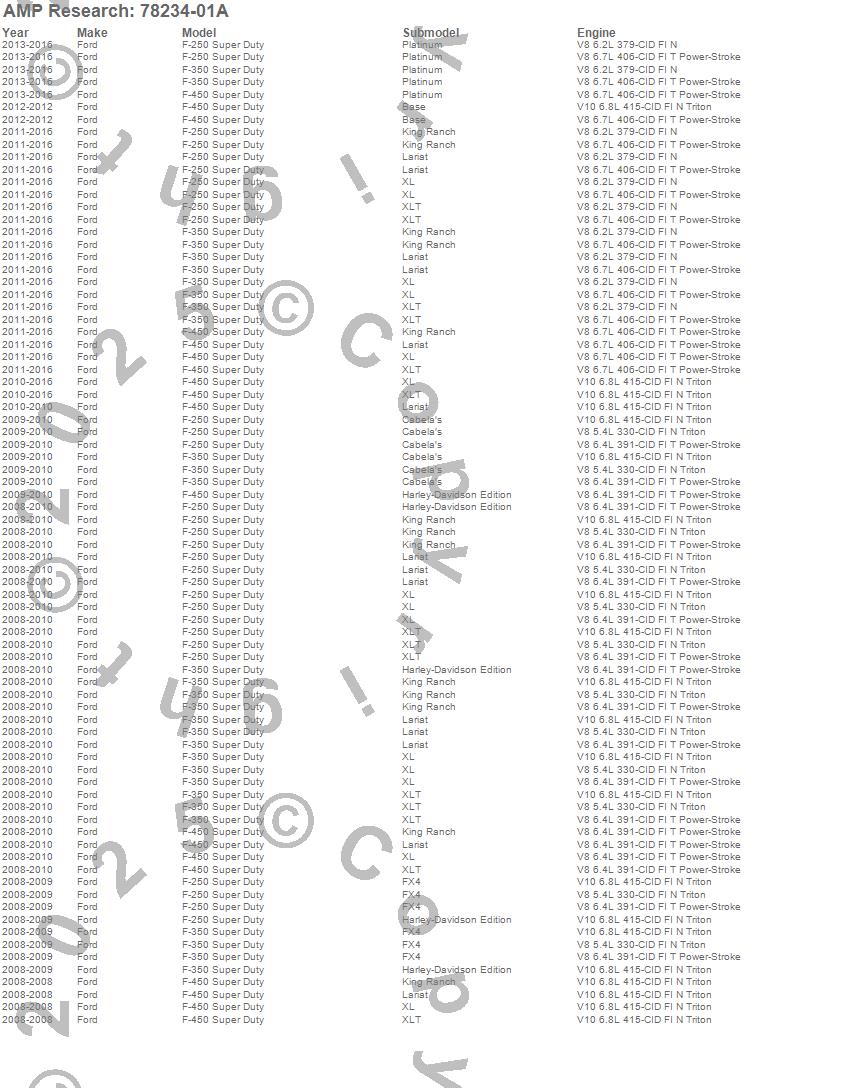 Below is an abbreviated list of applications for the PowerStep Xtreme.F-250 Super Duty, F-350 Super Duty, F-450 Super Duty, Ford, 2016, 2015, 2014, 2013, 2012, 2011, 2010, 2009, 2008