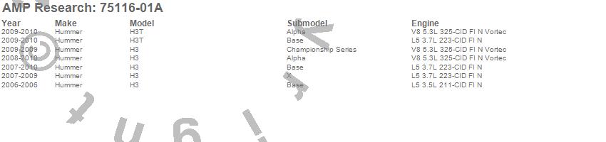 Below is an abbreviated list of applications for the PowerStep.H3, H3T, Hummer, 2010, 2009, 2008, 2007, 2006