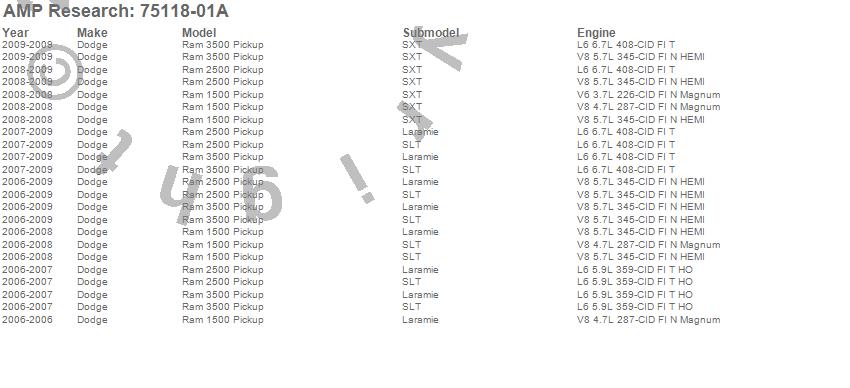 Below is an abbreviated list of applications for the PowerStep.Ram 1500, Ram 2500, Ram 3500, Dodge, 2009, 2008, 2007, 2006
