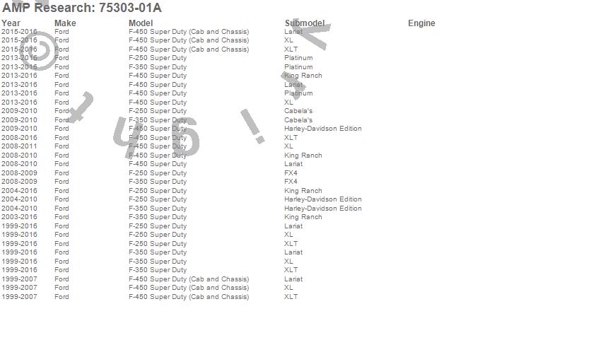 Below is an abbreviated list of applications for the BedStep.F-250 Super Duty, F-350 Super Duty, F-450 Super Duty, Ford, 2016, 2015, 2014, 2013, 2012, 2011, 2010, 2009, 2008, 2007, 2006, 2005, 2004, 2003, 2002, 2001