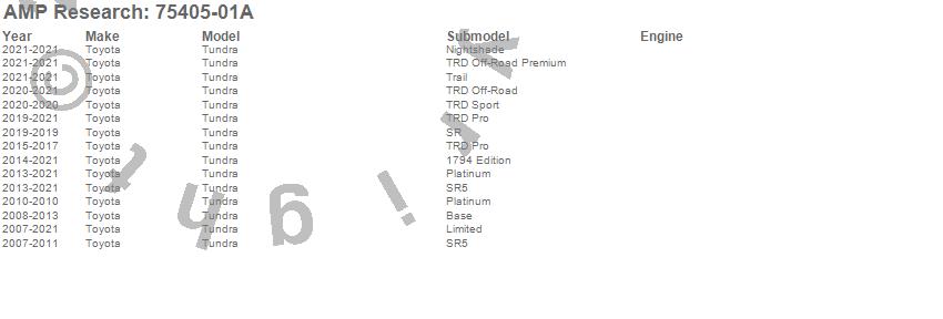 Below is an abbreviated list of applications for the BEDSTEP2.Tundra, Toyota, 2021, 2020, 2019, 2018, 2017, 2016, 2015, 2014, 2013, 2012, 2011, 2010, 2009, 2008, 2007