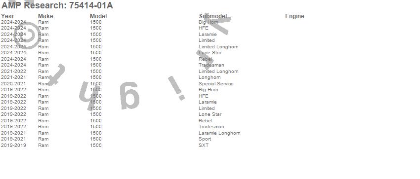 Brand: AMP ResearchPart Number: 75414-01ATruck Step Type: BlackUPC: 815410014260