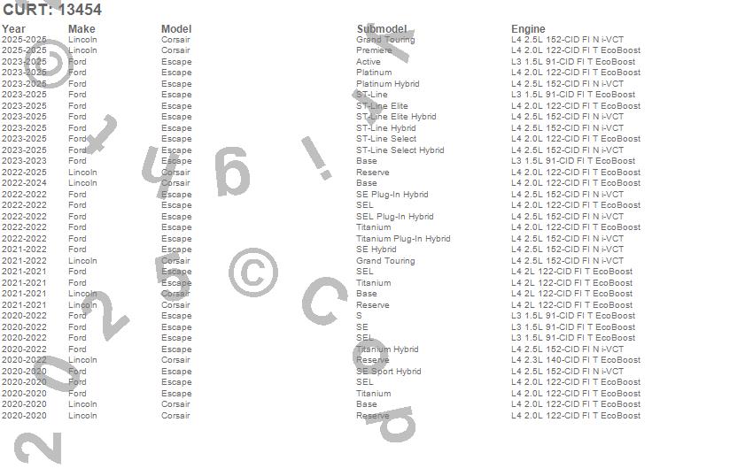 Below is an abbreviated list of applications for the Class III 2 in. Receiver Hitch.Corsair, Escape, Ford, Lincoln, 2026, 2025, 2024, 2023, 2022, 2021, 2020