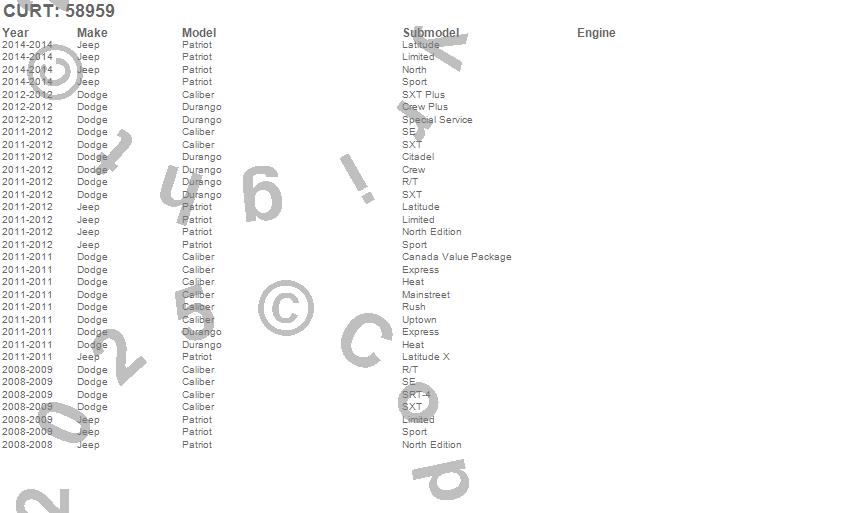 Below is an abbreviated list of applications for the Towed-Vehicle RV Harness.Caliber, Durango, Patriot, Dodge, Jeep, 2014, 2012, 2011, 2009, 2008
