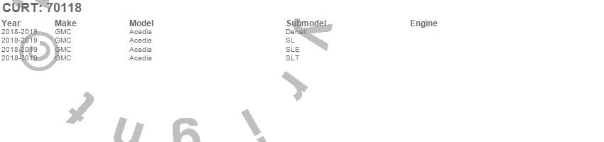 Brand: CURTPart Number: 70118Tow Bar Type: For Dinghy Towing - Incl. Base Plate And Installation Hardware[Tow Bar Sold Separately]UPC: 612314701186