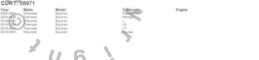 Brand: CURTPart Number: 58971Trailer Wire Connector Type: For Dinghy Towing - Incl. Harness/4-Flat Extension/Mounting Bracket And Hardware - w/o LED TaillightsUPC: 612314589715