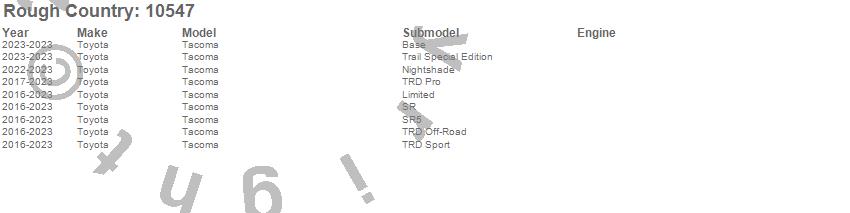 Below is an abbreviated list of applications for the Engine Cold Air Intake Kit.Tacoma, Toyota, 2023, 2022, 2021, 2020, 2019, 2018, 2017, 2016