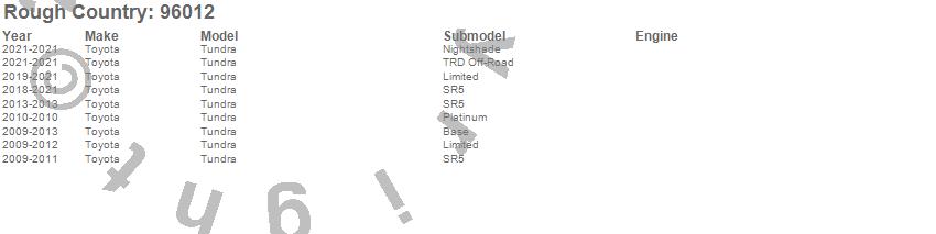Brand: Rough CountryPart Number: 96012Exhaust System Kit Type: Dual Cat-Back - Black Tips - Stainless - Includes Installation InstructionsUPC: 843030187644